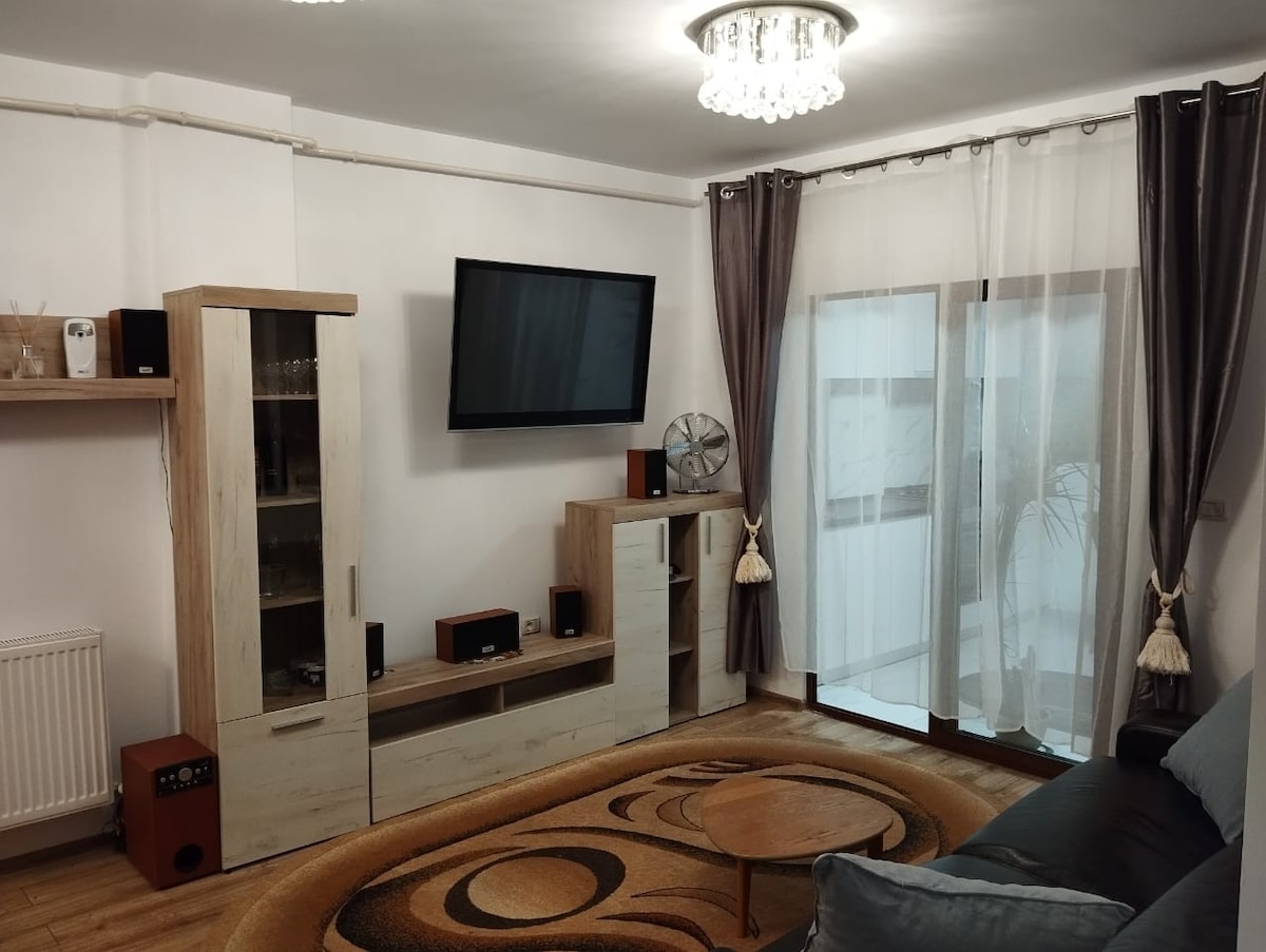 This stylishly decorated studio is set in a newly developed area, just 7 minutes by car to the city center (Palas Shopping Centre). The building was finished in 2019 & all the furniture is brand new. It is close to everything! Iulius Mall is just 2 minutes away, stores, cafes just around the corner. Great for couples, remote work, even for your furry friends! ⋆ FREE on street parking ⋆ FREE high speed Wi-fi ⋆ Smart TV + cable ⋆ A/C ⋆ large fridge ⋆ washing machine ⋆ large balcony with a view