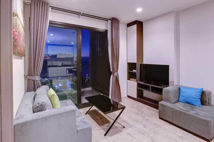 M Pattaya The base sea view two sets of independent two rooms, internet-famous infinity pool, convenient transportation, 200 meters from the sea, walking distance to the mall and walking street