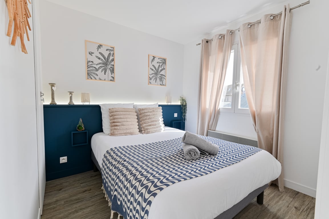 Come and recharge your batteries in this beautiful 25 m2 apartment, full sea view with "beach hut" decoration! Completely renovated in the summer of 2024, it is located on the seafront, 2 steps from the city center of Villers-sur-Mer: ideal for enjoying the beach, the city and its activities. - Bed and bath linens provided - Wi-Fi and smart TV - 1 small bedroom with 140 x 190 cm bed - Living room with very comfortable 140 x 190 cm sofa bed - Furnished kitchen - Entrance with office area