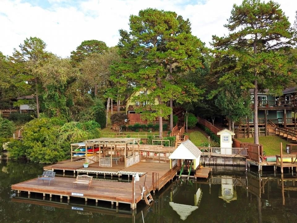 At Pat’s Place, you will enjoy *lakefront* & private dock access to Houston County Lake (Crockett, TX) — not to be confused with Lake Houston. This spacious 5 bedroom/4 bathroom is the perfect gathering place for family and friends. Outdoor fire pit, grill, and kayaks are provided for outdoor fun.