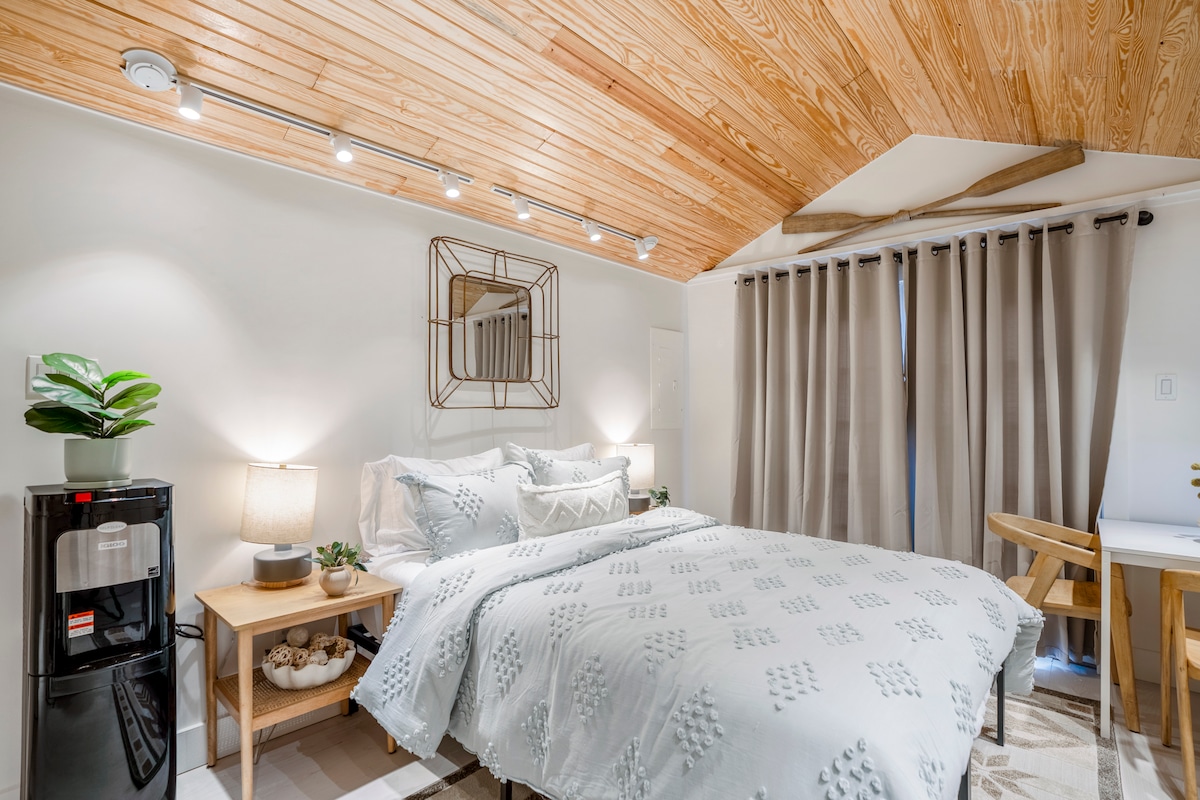 Come experience the best that Houston has to offer in our adorable farmhouse tiny home in historic Houston Heights! Our backyard tiny home seamlessly blends vintage allure with contemporary comfort. Open concept living, stylish kitchen, and a cozy loft bedroom. Boasting an 80+ walkability score, guests can easily walk to a plethora of cafes, boutiques, and parks. This space is perfect for business travelers, couples, and solo explorers seeking a cozy retreat in a vibrant, historic neighborhood.