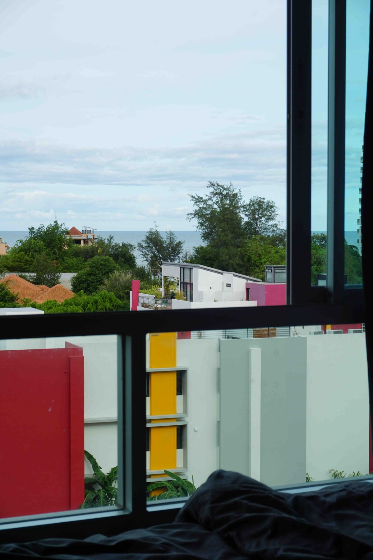 Enjoy stunning sea and Khao Takiab mountain views from this cozy 8th-floor apartment in Building A, just a 5-minute walk to Takiab Beach. Surrounded by local Thai restaurants, with 7-Eleven and Tops supermarket right across the street. Tamarind Market is 5 minutes by car, while Bluport Shopping Mall is 10 minutes away. The stay includes high-speed WiFi, water, electricity, and free cleaning every 15 days—perfect for couples, friends, family or guests working online in a relaxing seaside setting.