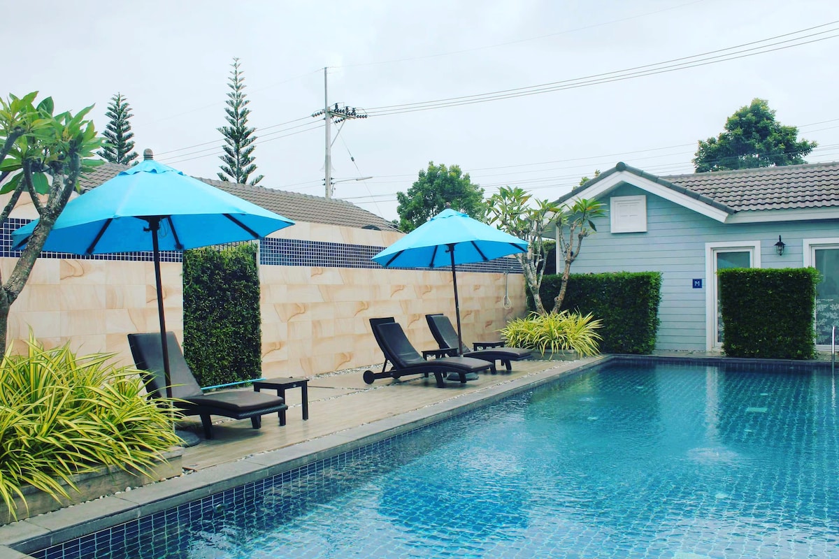 Welcome to ‘Hostmaker, We want you to feel like you came to see cute art. in the artist's gallery. ✔Superhost friendly Perfect for family and friends. (Upto 16 guests) ✔Private Pool with Slider and kids zone. ✔BIG TV, bluetooth sound-bar with Full option Karaoke. ✔5-Star In-Room Hotel Amenities. ✔No Sharing bath, All en-suite bathrooms. ✔Next to supermarket and 7-11. & 10min to the beach. ✔*** I guarantee an absolutely private stay. No sharing, no disturbances. ✔*** 24hr support by น้องมังคุด