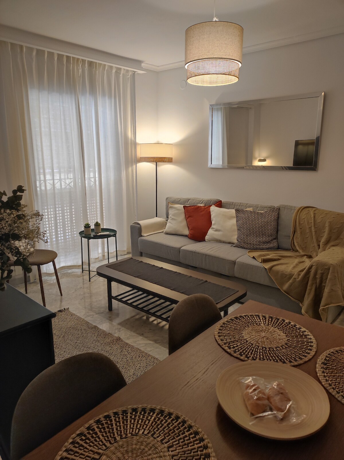 Within the plot of our house we have renovated this beautiful one-bedroom apartment in an open and modern style. The apartment has a separate entrance, kitchen and bathroom, workspace, and a living room that opens to the bedroom. It also has a patio for outdoor living, bright windows, and everything you need to relax It is located in the city belt, easy access by public transport (next to the metro and bus) or car (free parking area)