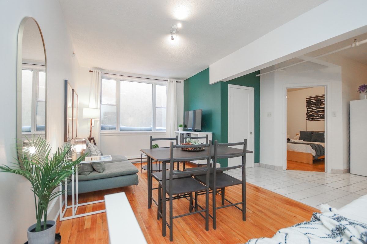 Welcome to The Lounge. This unique space was carefully designed to create the perfect lounge ambiance: pool table, glass chess board, dimmable lights, high seat dining area, roulette drinking game, etc. Everything was thought out for our guests to experience short term rental like no where else in the city. 15 minutes from downtown, you will be close to everything this beautiful city has to offer. Accommodate up to 8 guests with comfortable beds ! You will not be disappointed. CITQ: 308802
