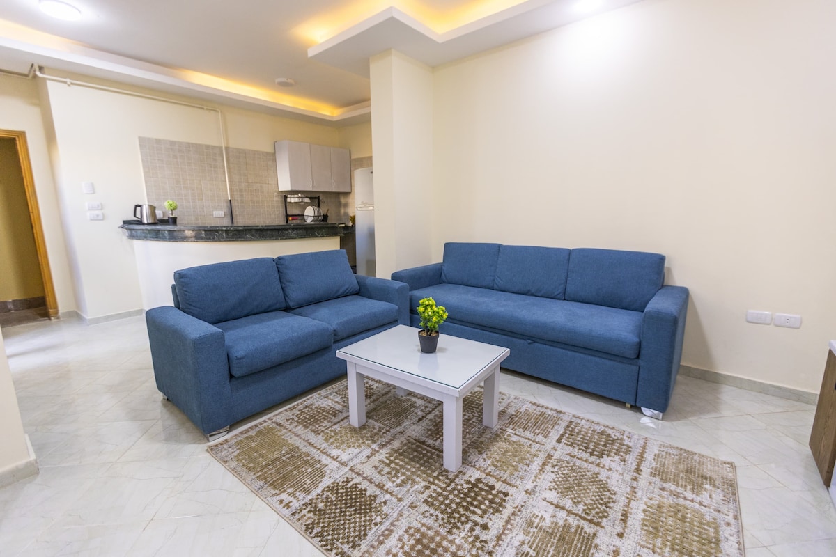 Located in the heart of Hurghada, Lazur Apartment at Lazur Hotel Apartments offers a comfortable and sustainable stay, just 5 km from Hurghada International Airport. Perfect for travelers seeking convenience, comfort, and quality service, the apartment combines hotel standards with the privacy of your own space. A modern sofa bed provides an extra sleeping space.🛋️ ✨ Optional Home-Style Meals Available: enjoy delicious homemade meals upon request: 🥐 Breakfast: $2 🍽️ Lunch: $8 🌙 Dinner: $8