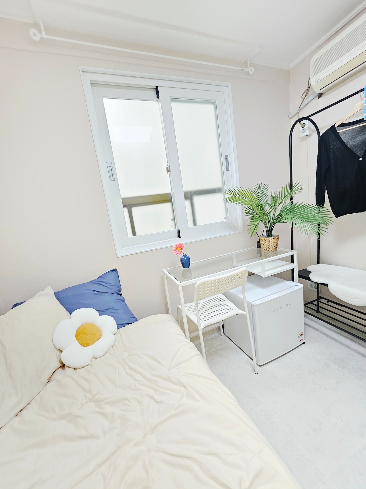 [NEW OPEN] ● STAY SAI 스테이사이 [1인실] -. 최대인원 : 1명 -. 혼자 머물기에 깔끔하고 아늑한 공간이에요. (개별 화장실 있음) -. 엘레베이터가 없으며 1인실룸은 1~2층에 랜덤 배정됩니다:) -. 핫한 광장시장 바로 앞, 지하철 종로5가역에서 도보 3분거리에 위치해요. -. 광장시장에서 맛있는 음식을 포장해와서 예쁜 공용부 공간에서 드실수 있어요. -. 숙소 이용객에게는 6가지 종류의 한국라면을 무료로 제공해요:) -. 간단한 조리가 가능한 예쁜 공용주방이 마련되어있어요:) -. 구비 가전 : 세탁기 / 건조기 / 냉장고 / 전자레인지/ 토스터기 / 조리도구 / 주방도구 / 각방의 에어컨난방시설 ● 호텔 베딩을 사용, 매번 살균 세탁된 깨끗한 침구를 제공해요. ● 매월 전문업체를 통한 정기 방역을 하는 안심 숙소에요:) ● 호스트가 직접 청소 관리를 하는 청결한 공간이에요.