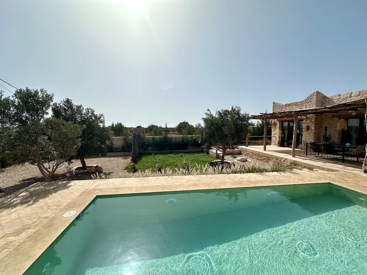 Luxurious villa not overlooked, nestled in the countryside 20 minutes from Essaouira, renowned for its heated beach-style pool from November to April. Its memorable sunsets and accessibility for people with reduced mobility make it an exceptional place. Discover a luxurious, comfortable and stylishly furnished space. The bright living room offers a perfect setting to relax, with an automated canopy for a smooth transition between indoors and outdoors.