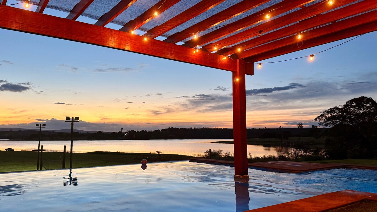 Ranch, before the ferry, for the whole family and friends in the interior of Minas Gerais and heart of Serra da Canastra. Lots of space, style and comfort. Fully equipped: two refrigerators, brewery, ice machine, beach tennis court, heated pool, air conditioning in all bedrooms and living room. Property in a gated community with 24-hour concierge and night patrol. The arrival to the place does not require a dirt road, being paved to the door. We have a pier for fishing and docking your vessel.