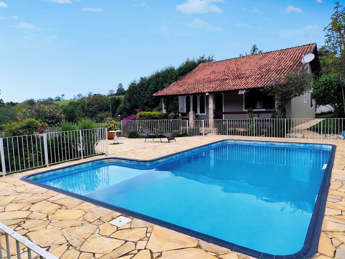 Spectacular Chalé located on the top of a beautiful mountain between Bragança Paulista and Tuiuti. Nearby market and restaurants with delivery. Lake for fishing. Organic orchard and vegetable garden, air-conditioned swimming pool without chlorine, pet animals, soccer field, barbecue, fireplace. Exclusive room for home office with great Wi-Fi. Pets are very welcome. Bed and bath linens are provided. Loud noise allowed. The property has one more house also rented for the season.