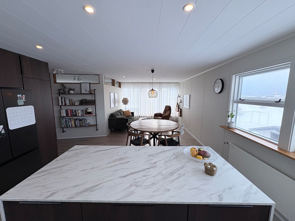 Renting this place means becoming a part of the inspiring story that Elín and Ljósbrá have crafted. They discovered an old fishing house, transformed it into a gym and yoga studio. Seeking new adventure, they newly renovated it into a stunning apartment. By staying here, you not only enjoy the luxury and beauty but also become connected to their journey. The appartment offers a serene and upscale environment where one can unwind, recharge, and escape the hustle and bustle of daily life.