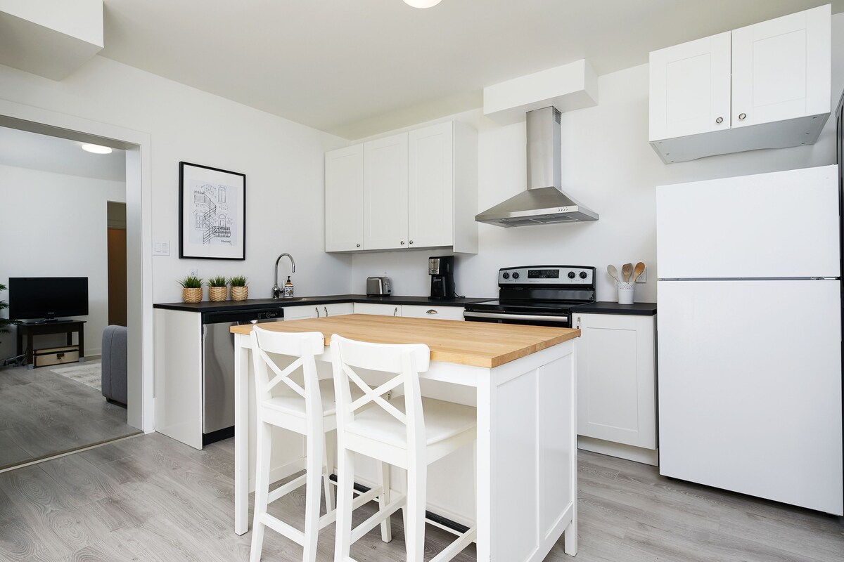 Step into your exclusive 1-bedroom, 2-bath urban retreat. This freshly renovated oasis is located just a 1-minute walk from Metro Beaubien on the historic Plaza Saint-Hubert. While you can feel the beat of the city just outside, the interior is a peaceful haven designed for calm and serenity.