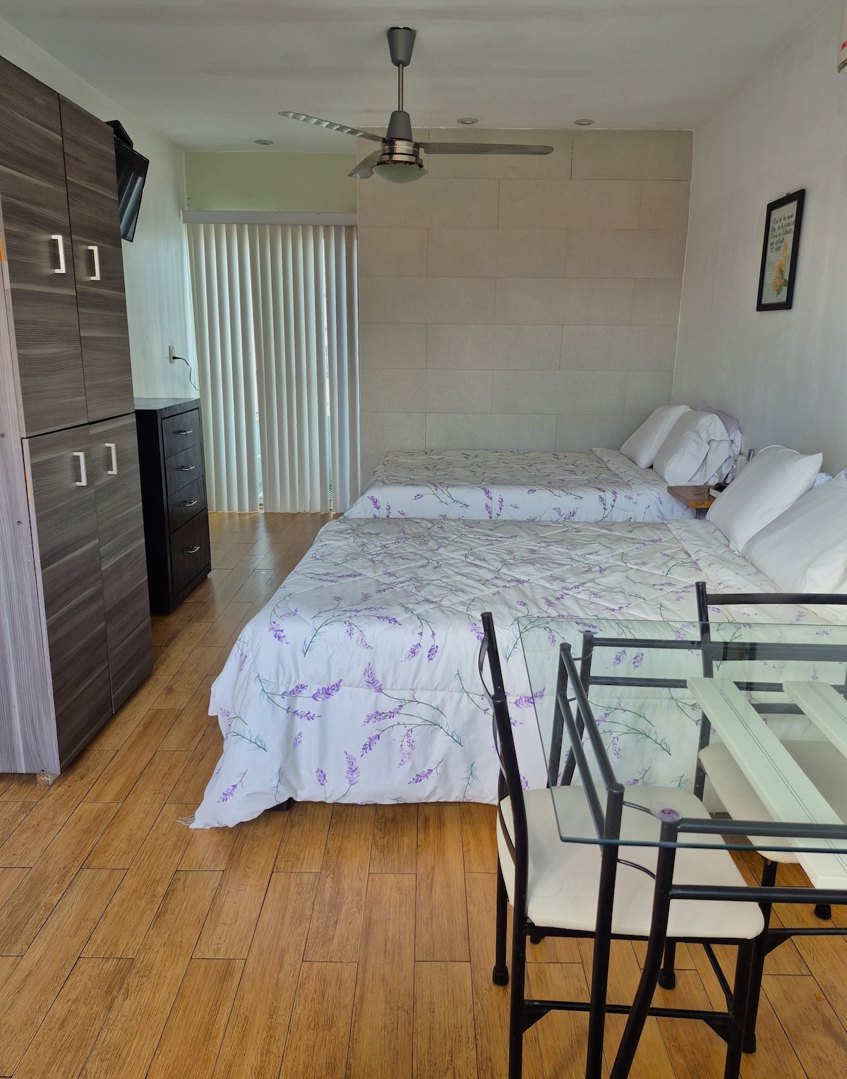 Departamento nuevo, entrada independiente en cuarto piso, comodidades necesarias para tener una estancia relajante y satisfactoria, que incluye cocineta, utensilios básicos de cocina, baño completo, Internet de 50 megas de velocidad, y TV de cable. Ubicado cerca de Paseo Martí, a 100 metros de la playa y facilidad de transporte público al centro de Veracruz o Boca del Río. Ideal para vacaciones o para viaje de negocios, disfrute de la privacidad y tranquilidad.