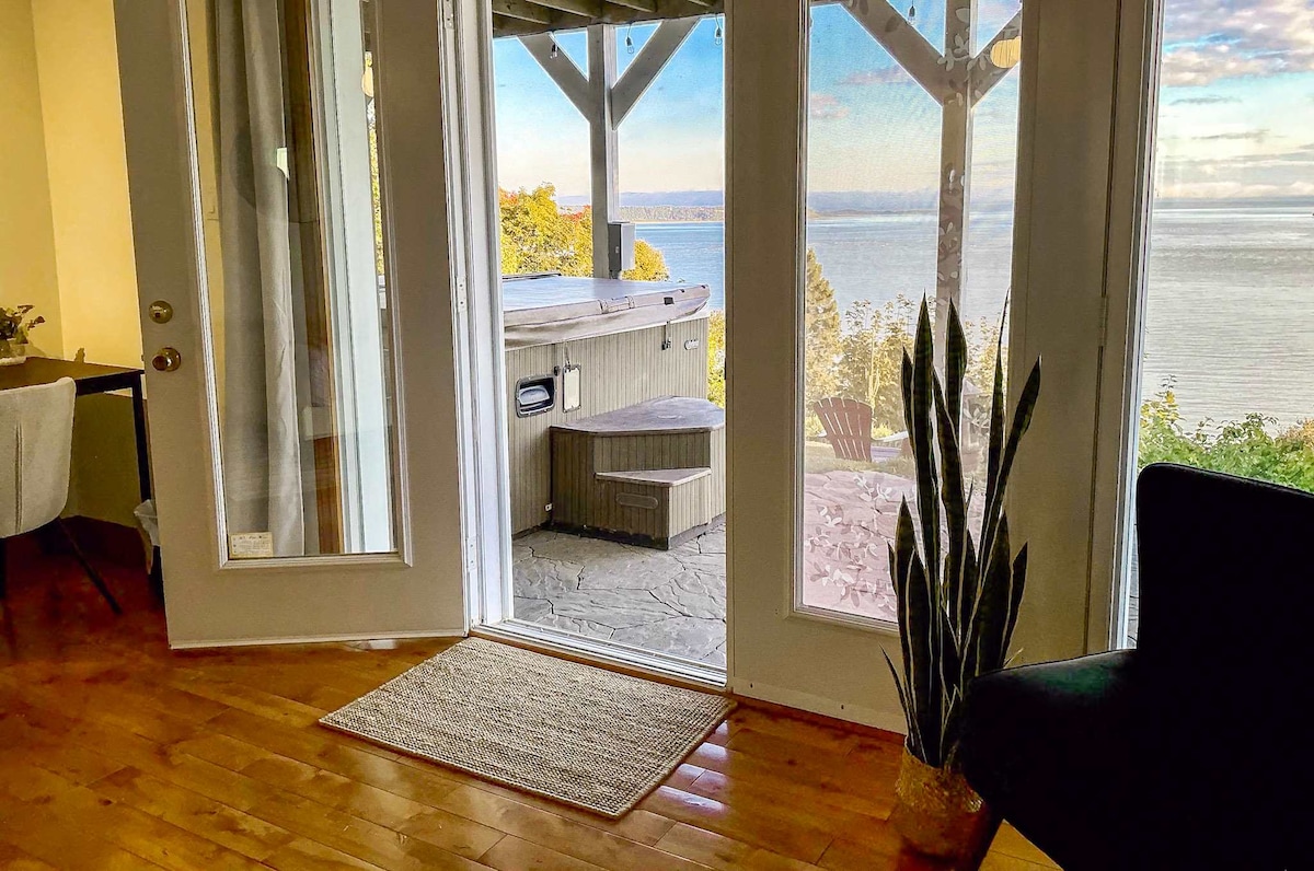 Small Scandinavian chalet for two people ideally located to enjoy the attractions of Charlevoix. It has a thermal circuit (hot tub, sauna, hammam) Very intimate and in the middle of the woods, the view overlooks the majestic river and the mountains in the distance. All the modern equipment is there and the comfort is absolute A/C and outdoor fireplace. The open concept design was designed for an immersive experience in nature: large windows, panoramic shower. Access via a private road at 500 m.
