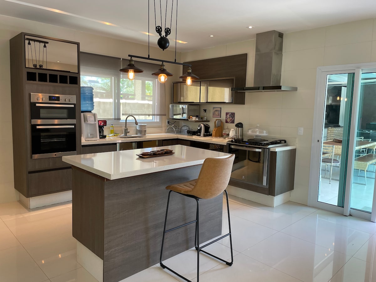 Beach house, Exclusive condominium, known for its beautiful houses and green area. Access to the beach, restaurants, market, beach kiosks and everything else within the condominium. Our area is a small house with a bedroom and bathroom. The room has 1 king size bed and another bunk bed for 2 people. A very stylish area with a barbecue, electric stove, swimming pool, pool table and large yard… If you have any questions, call us, we have some negotiable flexibility.