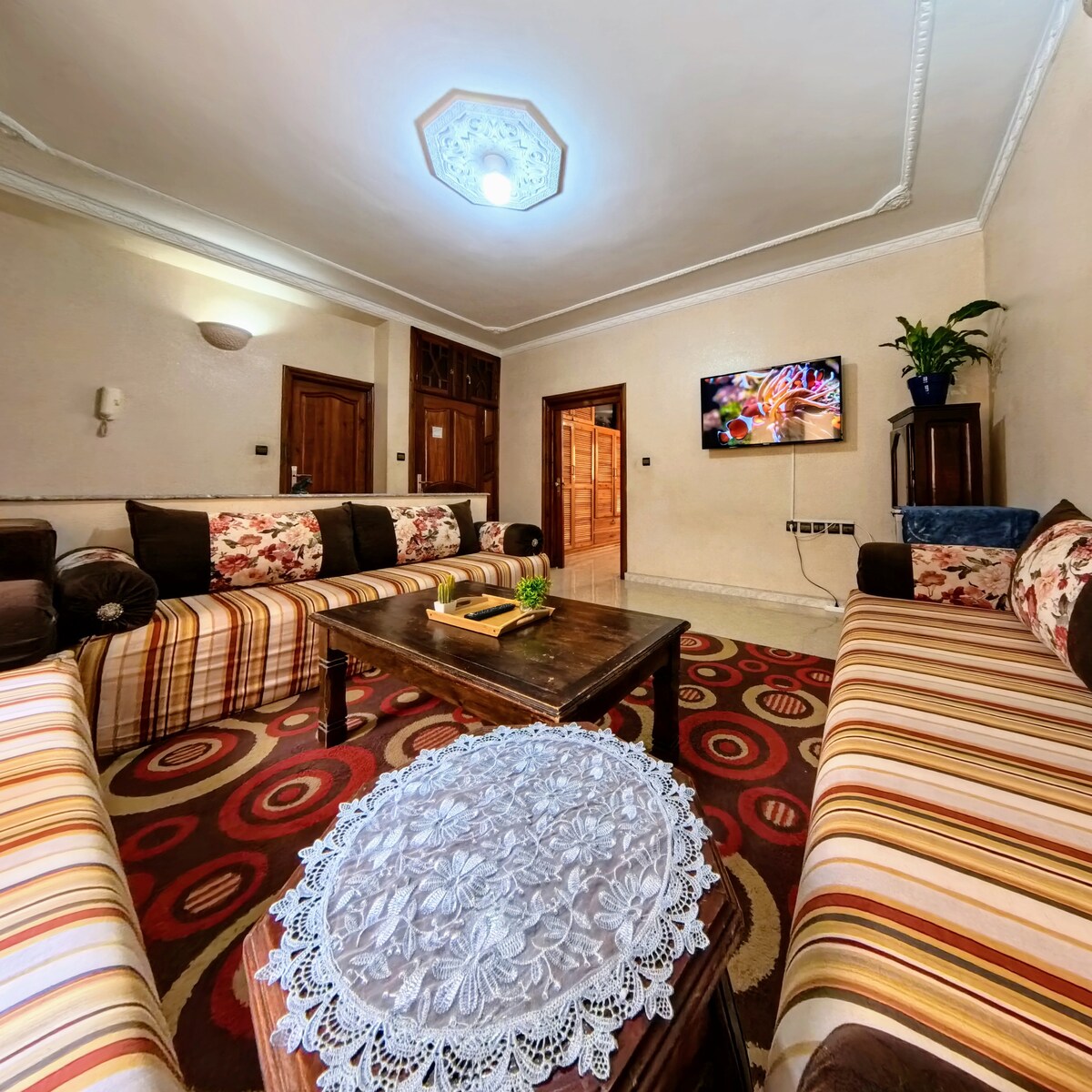 ✨ Newly renovated 3BR/2BA in Agadir’s exclusive gated Marina Complex. Perfect for families or friends seeking a peaceful, stylish stay. Spacious, central, and walkable — with full kitchen, AC in every room, Smart TV, and rain showers. 🚫 Not suitable for groups of single men looking to party 📄 Moroccan couples must provide a valid marriage certificate.