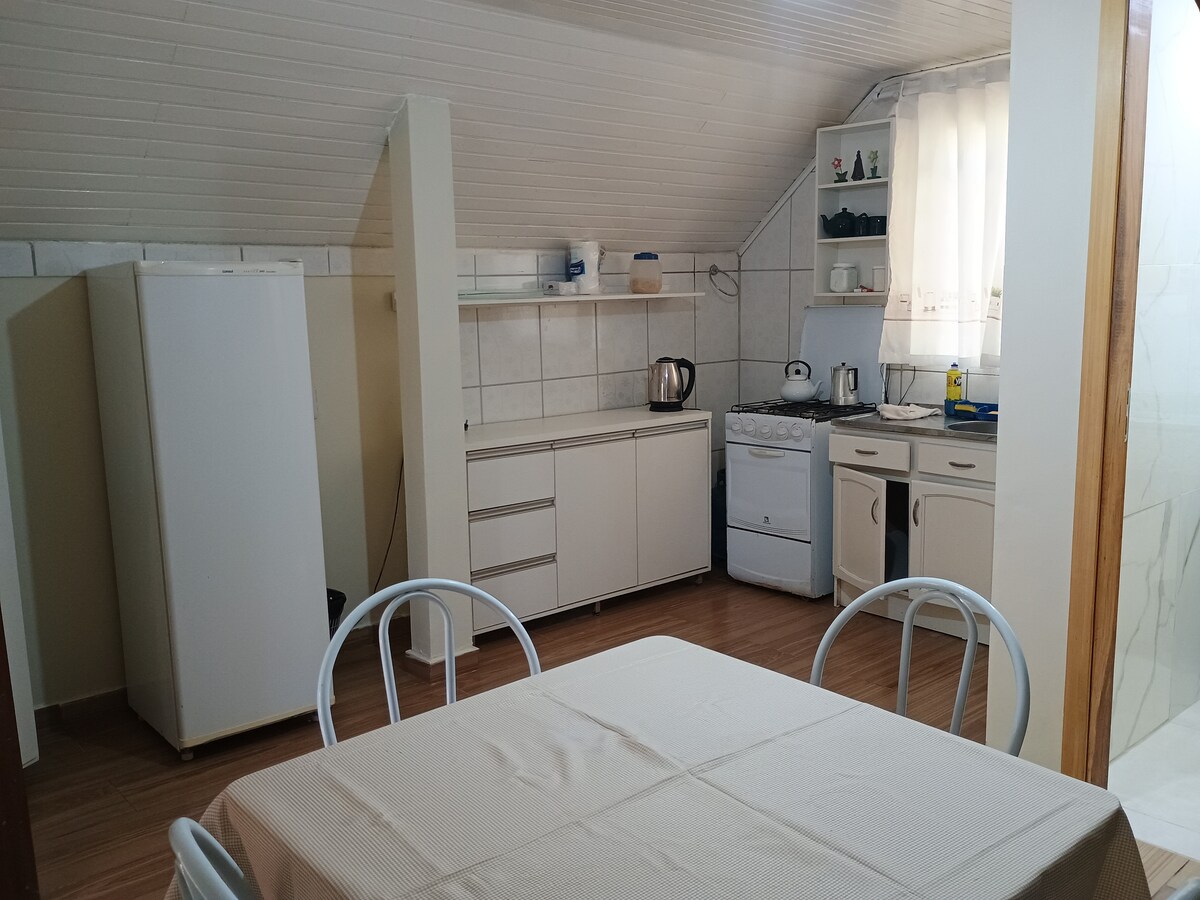 Charming retreat in the midst of nature overlooking vineyards. Perfect for relaxing, disconnecting and enjoying unforgettable moments with your loved ones. Accommodation for 4 people with private entrance and parking included. Full kitchen to prepare your meals, bathroom and private barbecue. Close to Guarapuava and the Cidade dos Lagos mall. Easy access from Estrada do Guairacá, just 14 km from BR277. Ideal place to spend a quiet stay in contact with nature.