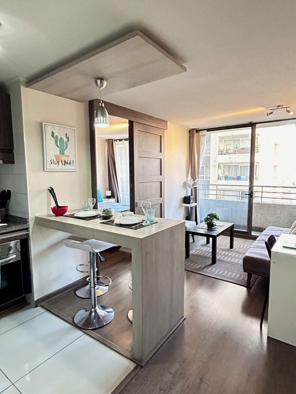 Modern and bright apartment with panoramic views, air conditioning and private terrace. Located in Providencia, steps from the Manuel Montt subway, Costanera Center, supermarkets and gastronomic area. Ideal for couples or travelers looking for comfort, good connection and tranquility in the heart of Santiago. The building has a pool, gym, and 24/7 security. Perfect for getaways or long stays with everything you need.