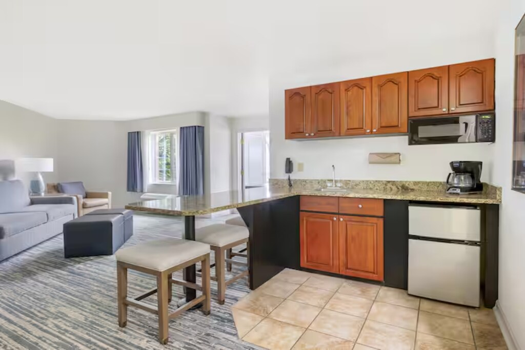 Enjoy your home away from home in a convenient location, less than a mile from the shores of Lake Michigan and Washington Park's beach/marina/zoo, Lighthouse Place Premium Outlets, Blue Chip Casino, coffee shops, breweries, and art galleries. Each suite is equipped with a living room with pull-out sofa sleeper, breakfast table and chairs, kitchenette, private bathroom, and separate bedroom.