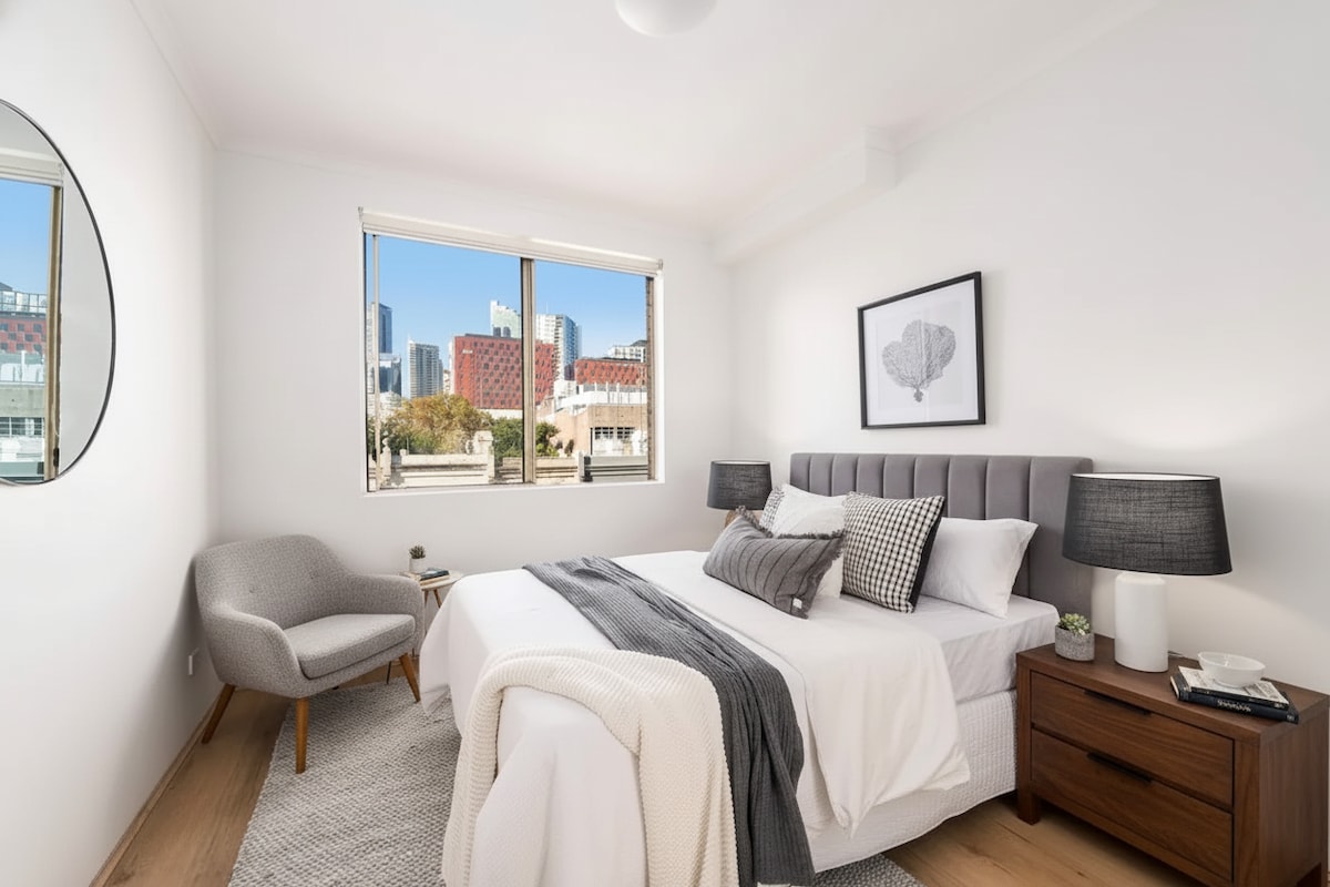 Welcome to your urban retreat! This luxury one-bedroom apartment offers the perfect blend of comfort and convenience. With a cozy king bed, a stunning rooftop pool, a fully-equipped gym, and a relaxing sauna, you’ll feel right at home the moment you step through the door. Prime Location near Opera House: Situated in the heart of the city, our apartment is just a short walk from the iconic Opera House, the Botanical Garden, and Circular Quay.