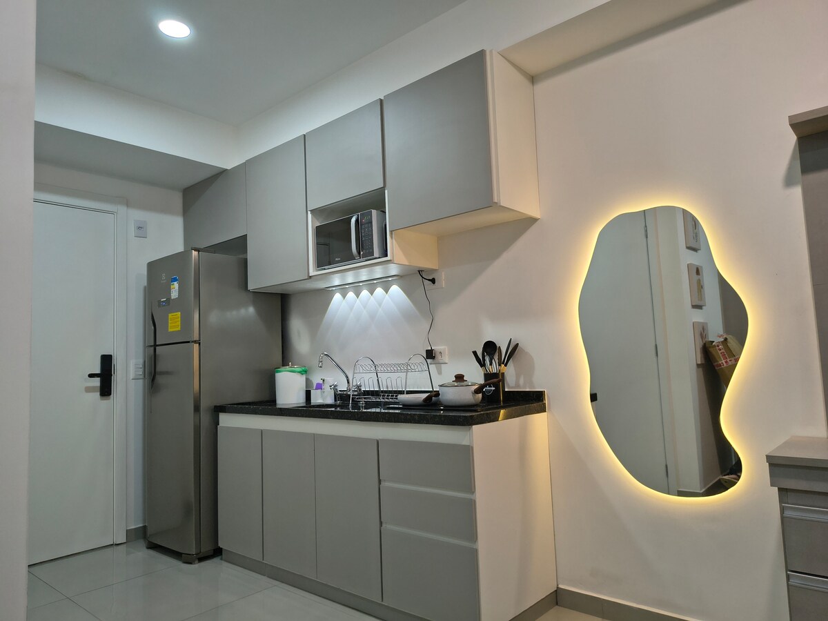 Elegant and cozy studio, perfect for those seeking comfort and practicality. The modern decor, with original works of art, will make you feel at home. We are 500 meters from the Santa Cruz subway. The neighborhood is residential, quiet and safe, full of shopping, services and leisure options. A few steps away there is a bakery, pharmacy, market and restaurants. In addition, we are close to Congonhas Airport, Ibirapuera Park and other tourist attractions in São Paulo.
