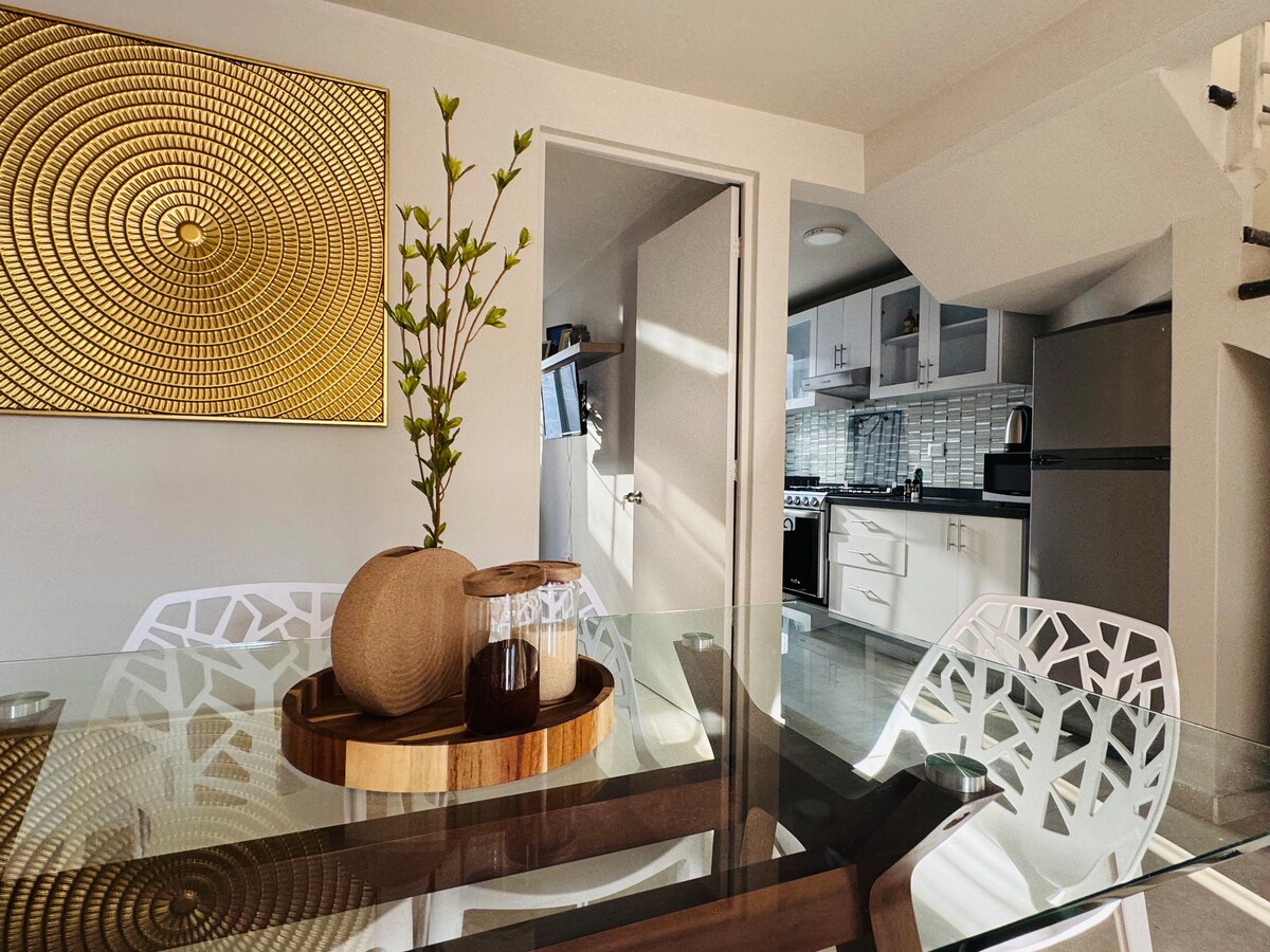 Microdepartamento compacto y funcional, diseñado para 1 o 2 personas que buscan una estancia privada y práctica. Se encuentra en planta baja y cuenta con acceso independiente directamente desde la calle y chapa inteligente con contraseña personalizada. Está ubicado en una zona popular y tradicional, con vida local y comercios a pocos pasos, no esta en Fracc. privado. No es una zona residencial de lujo, por lo que es ideal para huéspedes que priorizan funcionalidad, precio y conectividad.