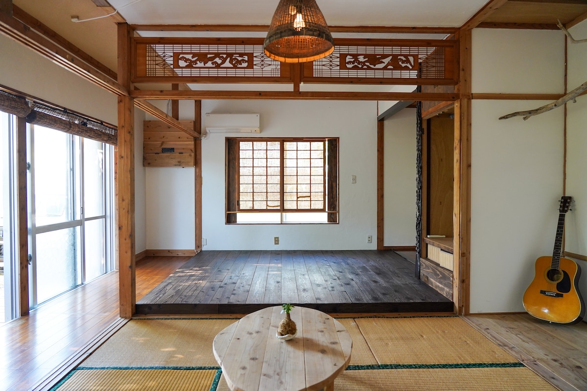 Welcome to your private sanctuary in Kawahira, Ishigaki Island. Just a 3-minute walk from Kabira Bay, this traditional Japanese house offers a peaceful stay surrounded by nature. Enjoy a calm tatami space with soft natural light, perfect for slowing down and reconnecting. This is not a hotel, but a simple and authentic home where you can experience the beauty of wabi-sabi — finding peace in imperfection and natural simplicity. Ideal for families and groups up to 10 guests. Pets are welcome.