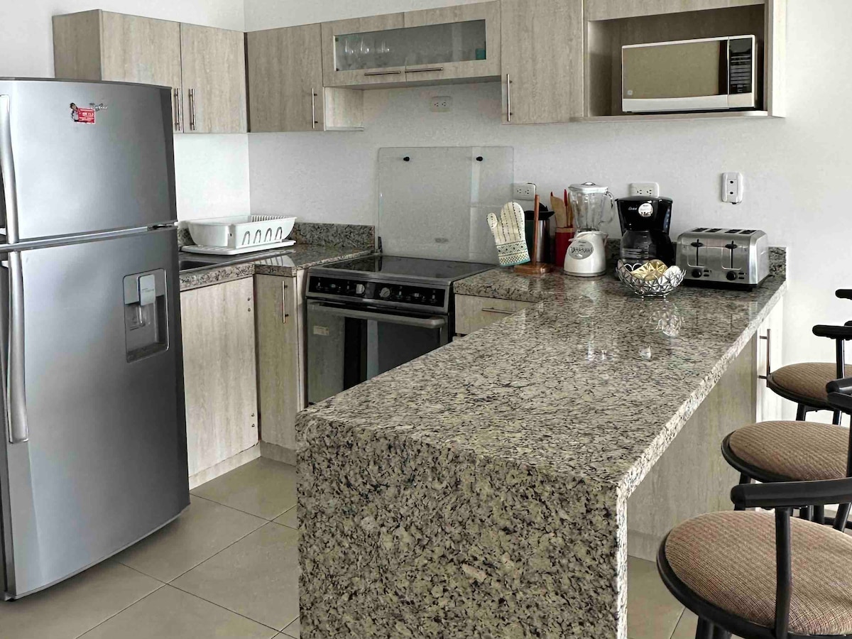 If you want to escape from city stress, come and enjoy a stylish experience at this centrally-located place in the fishing village of Salango. The apartment is located about 80 meters from the beach, has all the utensils in the small but very bright kitchen, hot water shower and also a single environment ideal for couples or if you are an adventurer of short or long term stays. Floor and bathroom with light-colored porcelain tiles where you can always feel comfortable. 0991196975