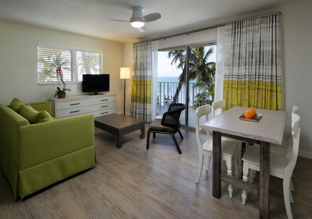 Find space to relax and recharge in our Junior Suite in Coconut Wing, featuring a private bedroom with a king bed and a separate living area with a sofa bed. Whether you're returning from a day of kayaking, snorkeling, or beachside lounging, this suite offers the comfort and convenience you need—with a small refrigerator, daily housekeeping, and all essentials provided. It’s a welcoming retreat in the heart of our lively bayside property.
