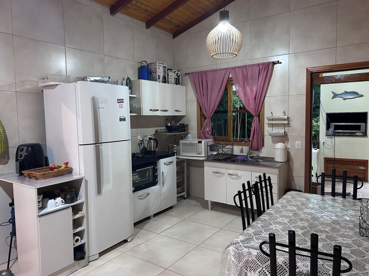 Sítio perfeito, em meio à natureza, com privacidade (final da rua) e ótimas acomodações, próximo a mercado, farmácia etc. Amplo mato nativo, com quiosque para confraternização. Equipado com todos os eletrodomésticos necessários e lareira. Muito aconchegante. Não possui ar condicionado (apenas ventiladores) pq o local é muito fresco. No verão montamos piscina de 5000 L. Imóvel com acessibilidade. - Disponível para eventos, mediante consulta (valor cfe o numero de pessoas)