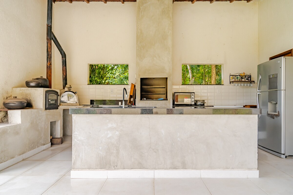 Have fun with the whole family at this stylish place. A place with 5,000 m2 in a condominium with comfort and modernity. The condominium has two soccer fields, swimming pool, waterfall and an extensive green area with fruit trees. Contact with greenery and 15 minutes to the beach. Perfect harmony, a true refuge.
