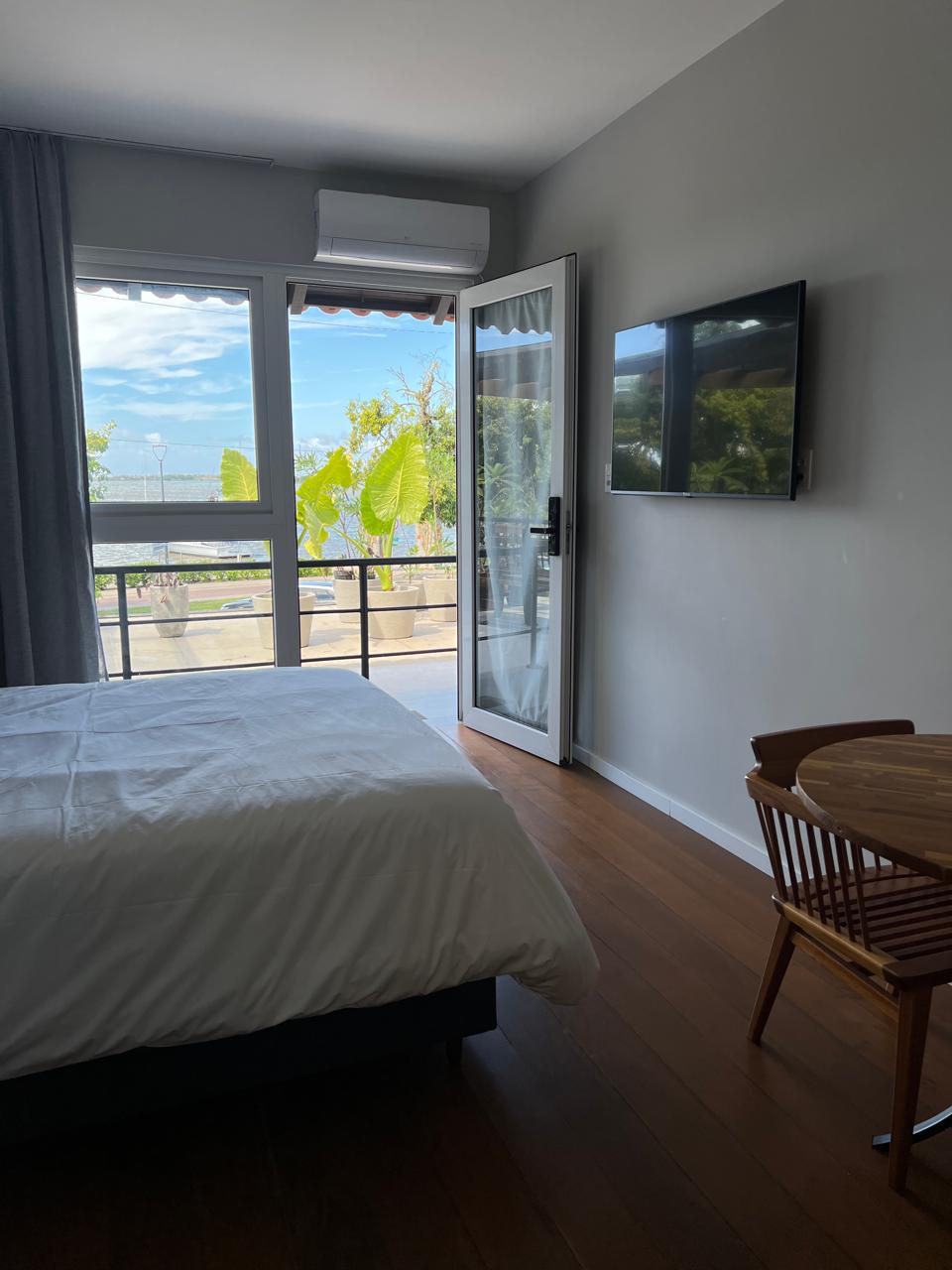 Complete studio for up to two people, located facing the Beira Rio in Itajaí. Perfect environment for those seeking exclusivity in a privileged location. Suite with compact kitchen, television, air conditioning and excellent bed. Very comfortable stay with a breathtaking view of the river and the sunrise. We are located on the city's gastronomic avenue, with several options to choose from. Wonderful beaches 1 km from you.