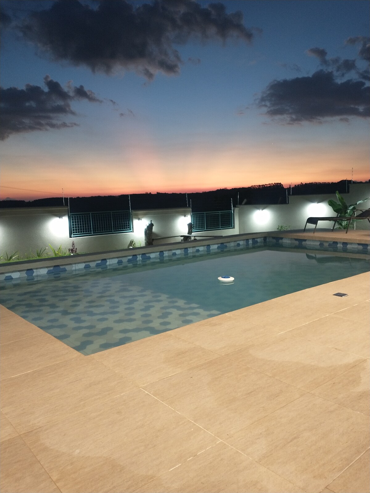Casa de campo, área rural com ares de serrinha, lugar lindo, belas paisagens, rodeado de haras, sítios e fazendas, caminhadas na companhia de gados e cavalos. Uma bela piscina, frescor para dias quentes com prainha. Espaço todo gramado e fechado com muro , temos uma vista muito bonita, com um por do sol fantástico.