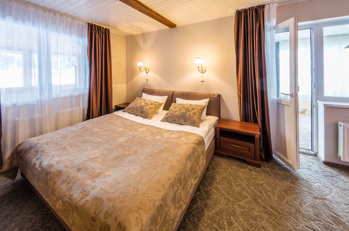 NEW FAMILY SUITES 5 FIREPLACES! The best family aparthotel for a holiday with children! The 5 Fireplaces Aparthotel is an amazing place where you can spend your long-awaited family vacation! The hotel is located at the foot of the Carpathian Mountains with its own enclosed guarded area, with high quality service, a beautiful swimming pool with a water slide, a children's pool for the youngest (0-5 years old), a luxurious SPA center and a beautiful restaurant!