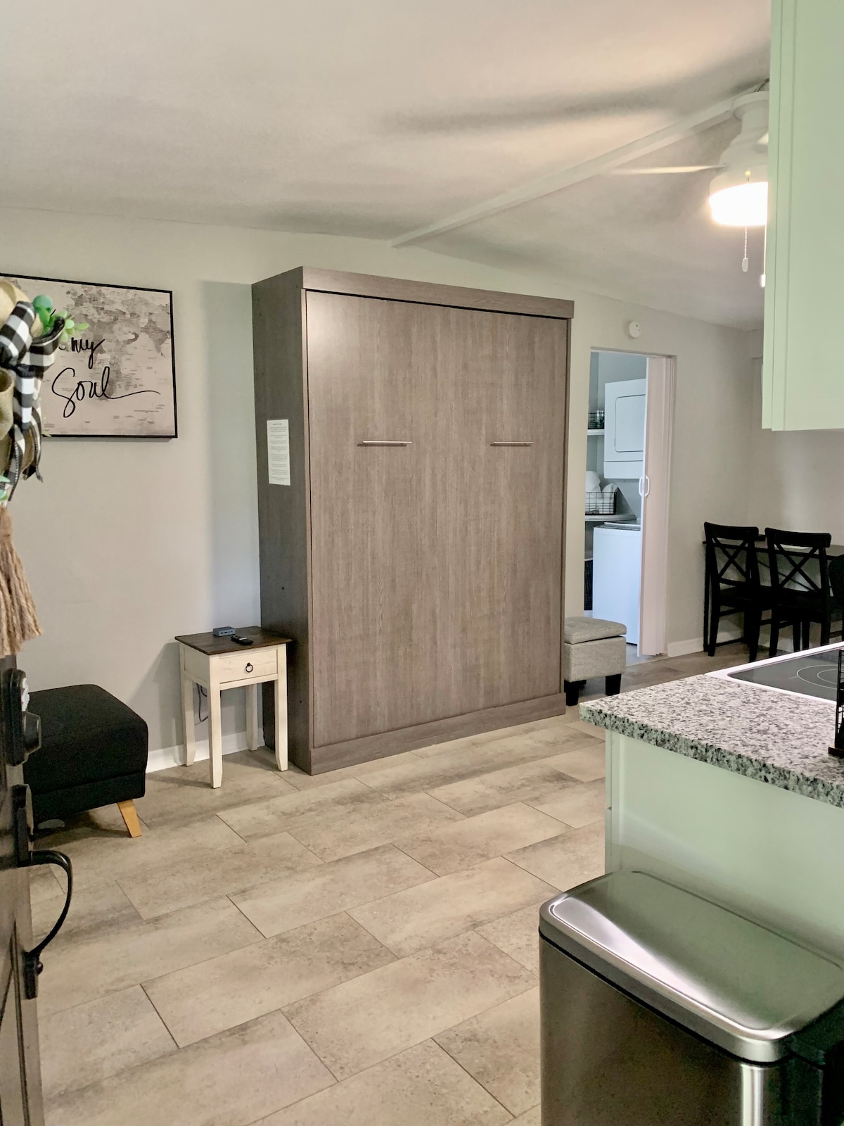 Welcome to the Pineapple Bungalow! This small, cozy space is perfect for those who want a touch of tiny house living. You'll be WOW'd at how easy it can feel when you're close to the hustle-and-bustle city life outside your door - but have everything right here inside this cute studio bungalow home. Affordable accommodations while maintaining high standards of cleanliness and comfortability. Pets are welcome, too! Bring your fur baby along for your adventures! (pets subject to house rules)