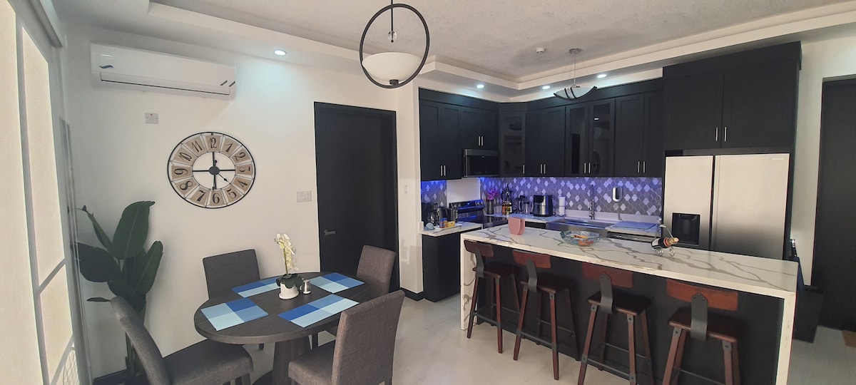 This spacious 2-bedroom, 2.5-bath apartment is perfectly positioned at Genesis 28, offering a seamless blend of luxury, comfort, and accessibility. Whether you're in town for business, relaxation, or celebration, you’ll find everything you need at your fingertips. Located just minutes from Devon House, Half-Way Tree, shopping centers, hospitals, restaurants, and supermarkets, this is the ideal base for exploring the city while enjoying upscale living. Transportation services can be arranged.