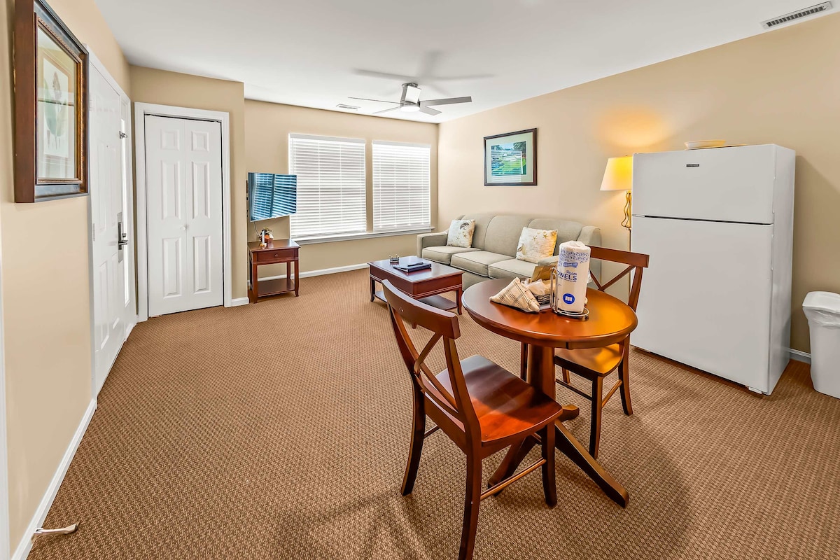 The Harbourside Resort Oasis offers everything you need for a cozy and peaceful getaway or a longer stay. Queensize hybrid bed will ensure you get the rest you need to wake up recharged for the day ahead and sofa folds out to a full bed. Enjoy the amenities at the rec center, full gym, indoor and outdoor pool, sauna, hot tub, mini golf, tennis, pickleball, basketball and scheduled activities or spend the day in charming downtown New Bern, you are sure to make the most of your Time Out with ease.