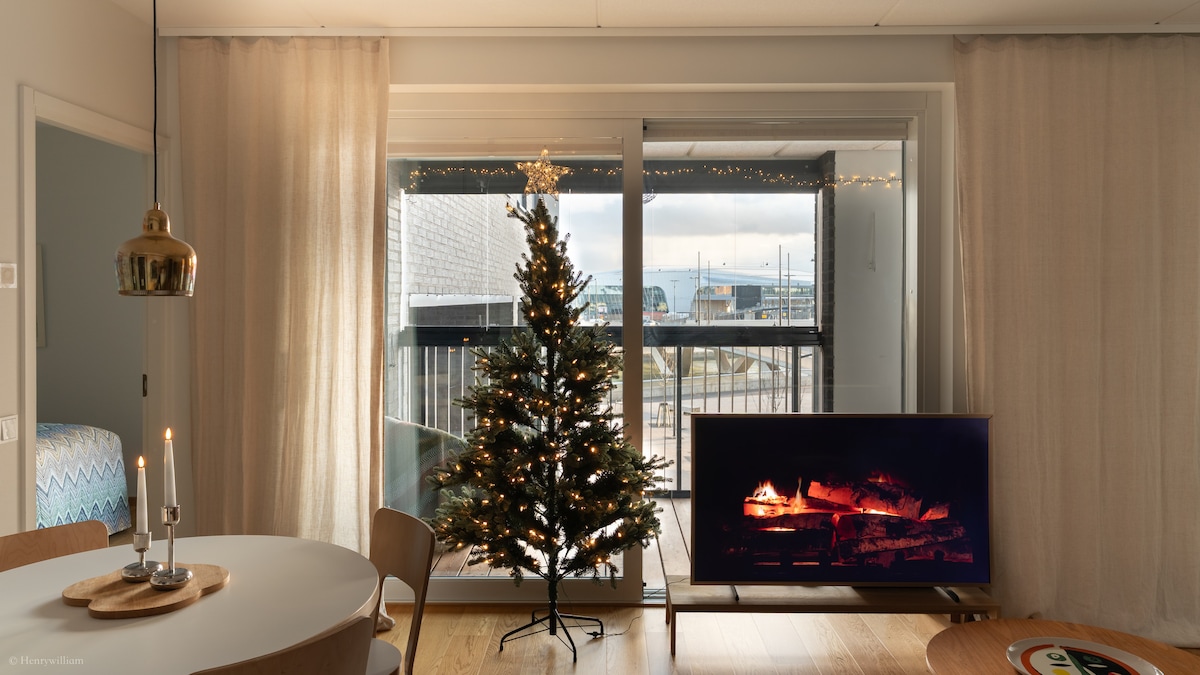 Modern 2021 constructed apartment with a beautiful sea view from every window. a stones throw away from West harbour terminal Helsinki-Tallinna ferry terminal (Eckerö line and Tallink) This apartment offers well tought living space, huge glazed balcony with fantastic view to sea and west harbour, and high quality scandinavian decor. From in front of the apartment, you can take the tram to the center of Helsinki in 10 minutes.