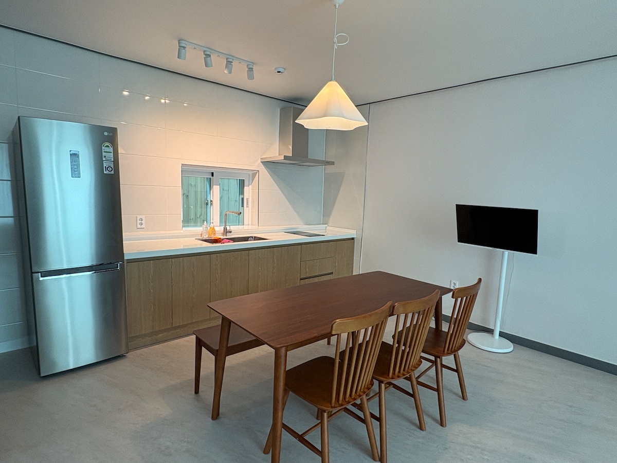 Escape the hustle and bustle of the city and head to a small rural village located in Cheongpungho, Jecheon, North Chungcheong Province. Marja House is a cozy village house that has been renovated by the parents' own hands, and has been reborn as a special retreat with a unique sense. This is the perfect place for those who seek true healing in nature. Enjoy the relaxation in the small and simple garden, and admire the numerous stars embroidering the clear night sky. The sound of a quiet country village relaxes your mind and makes you forget the stress of everyday life. -Private studio style: A 20-square-meter studio-style single-story house that can be used privately, offering complete privacy. - Sky with good visibility of stars: At night, you can experience unforgettable moments under the sky full of stars. Marja House will give you unforgettable memories of the countryside that will breathe new life into your daily life with the charm and warmth of the countryside. Book now and experience that precious moment^^