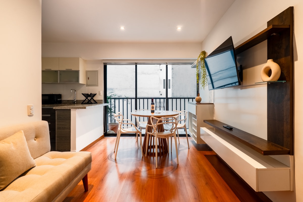 Beautiful New Apartment on Avenida San Felipe with: -Cozy living room with comfortable furniture and a spectacular view, perfect for relaxing. -Kitchenette fully equipped with modern appliances. - Integrated laundry with washer-dryer for added convenience. - Full bathroom with hot water and all the necessary amenities. - A warm and bright bedroom with a comfortable bed. -Balcony with an amazing view of the city. Located in a strategic area of Jesús María.