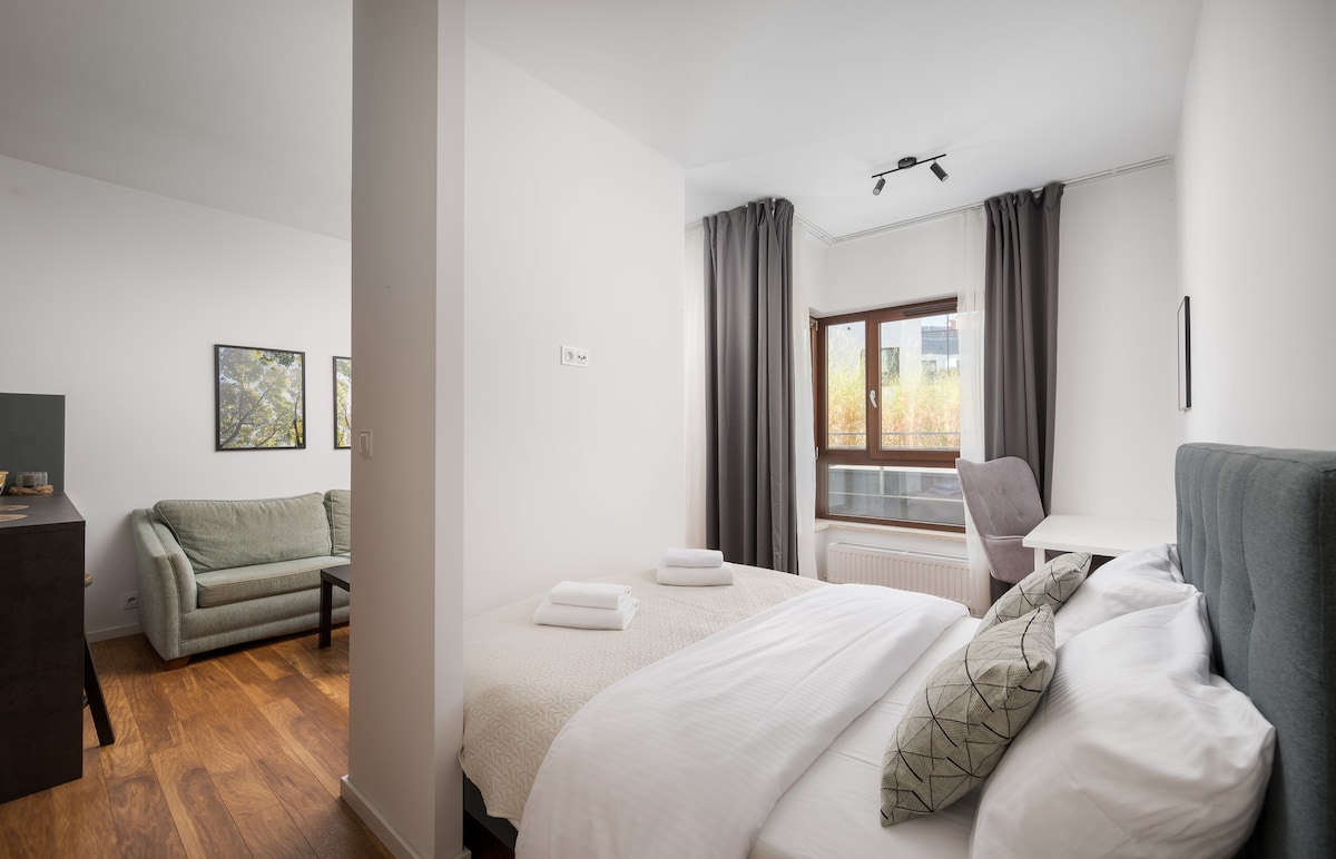 The comfortable Graphite Apartment is the perfect place to relax and work in the heart of the city. Located close to the city center, Legia City Stadium, the Royal Baths and the Vistula Boulevards, it offers comfort to both tourists and business travelers. A fully equipped kitchen, fast internet and cozy space make your stay comfortable. The proximity of offices and transport makes the apartment ideal for business stays in Warsaw.