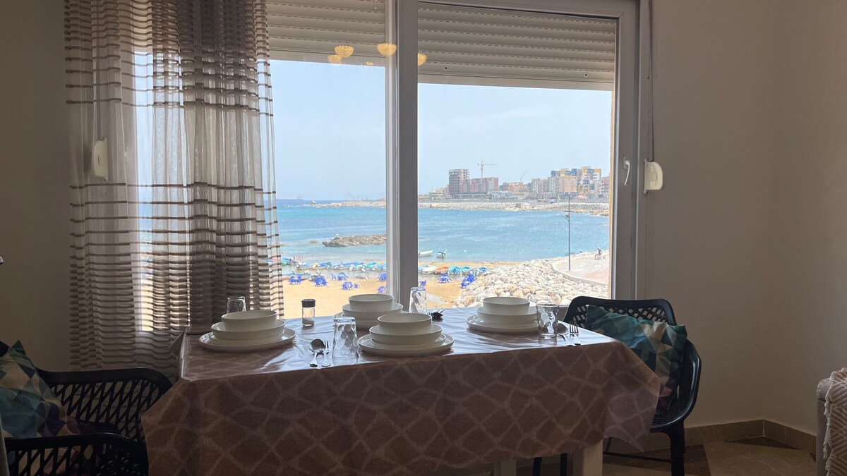 Your front-row seat to the Mediterranean in the heart of Jijel! This chic 2nd-floor apt offers stunning sea views, just 10m from the beach & 20m from Beaumarcher. Stay cool with AC in this modern, cozy space, complete with a full kitchen & washer. The perfect central spot for your coastal holiday!