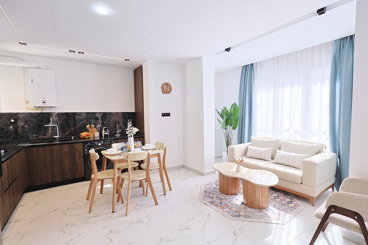 Located in the heart of Jijel in Boumarchè, steps away from the beach, a luxurious brand-new getaway by the Mediterranean Sea. Designed with modern finishes and flooded with natural light, it offers breathtaking sea views perfect for enjoying your morning coffee or sunset drinks. The apartment features a secured access to the building, a fully equipped kitchen, a comfortable living area, and easy access to vibrant restaurants and local attractions.