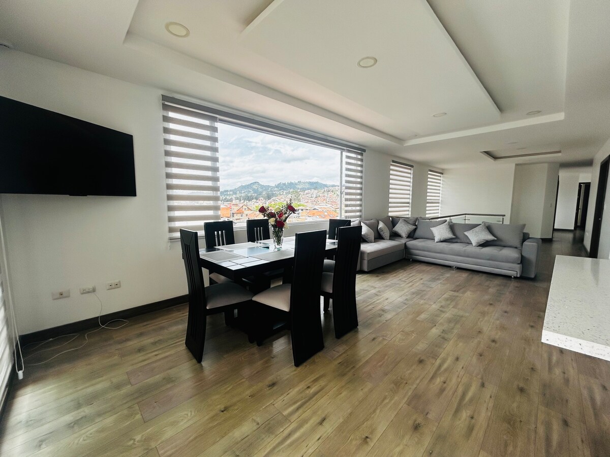 Le damos la bienvenida a nuestro exclusivo retiro en el séptimo piso de una de las zonas residenciales más tranquilas y elegantes de Cuenca. Este apartamento no es solo un lugar para alojarse, es un espacio diseñado con un único propósito: ofrecerle una experiencia de confort y sofisticación inigualable. Ideal para viajeros de negocios exigentes, familias o parejas que buscan la máxima calidad en su visita.
