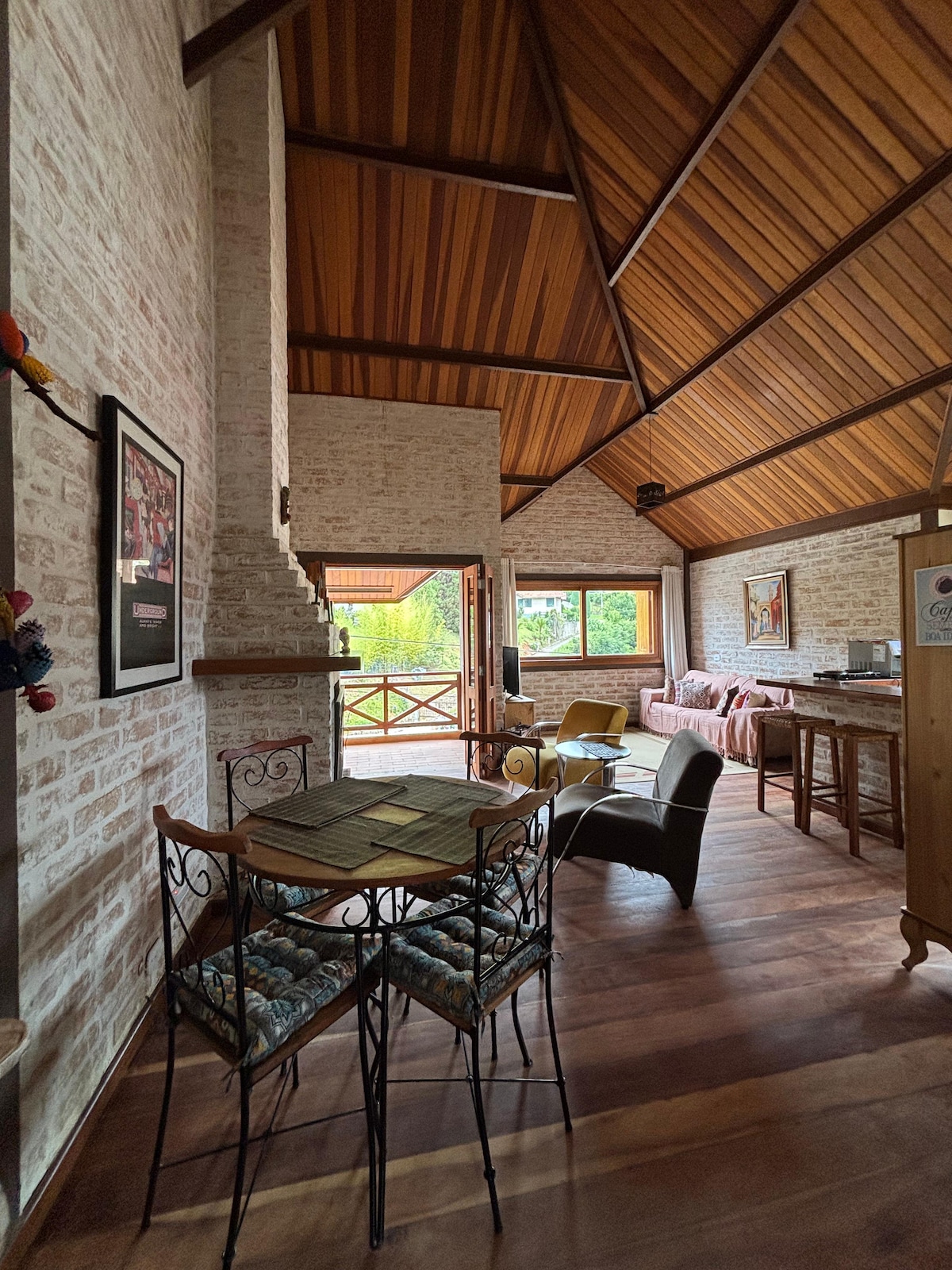 Charming cabin with stunning views of the dam and mountains. 2 suites, living room with fireplace, integrated kitchen with living room, toilet, laundry room and balcony with incredible landscape. Relax in the heated jacuzzi with chromotherapy, a pool with a view, and a moonlit terrace with a fire pit. Wi-Fi, barbecue, space for home office and environments designed for rest and connection with the essentials. Ideal for couples, families or those seeking comfort in nature Joanópolis, less than 2 hours from São Paulo, 1 hour 20 minutes from Campinas