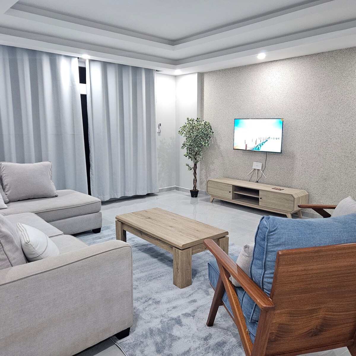 Welcome to our coastal retreat—just a 2-minute walk from the beach in the serene Nyali area. This newly built 3-bedroom, 3-bathroom apartment is perfect for families on holiday or colleagues traveling for work. Conveniently located near malls, Haller Park, the butterfly pavilion, and popular beachside restaurants like Kingston Ressort, Toscany and Char-Choma.
