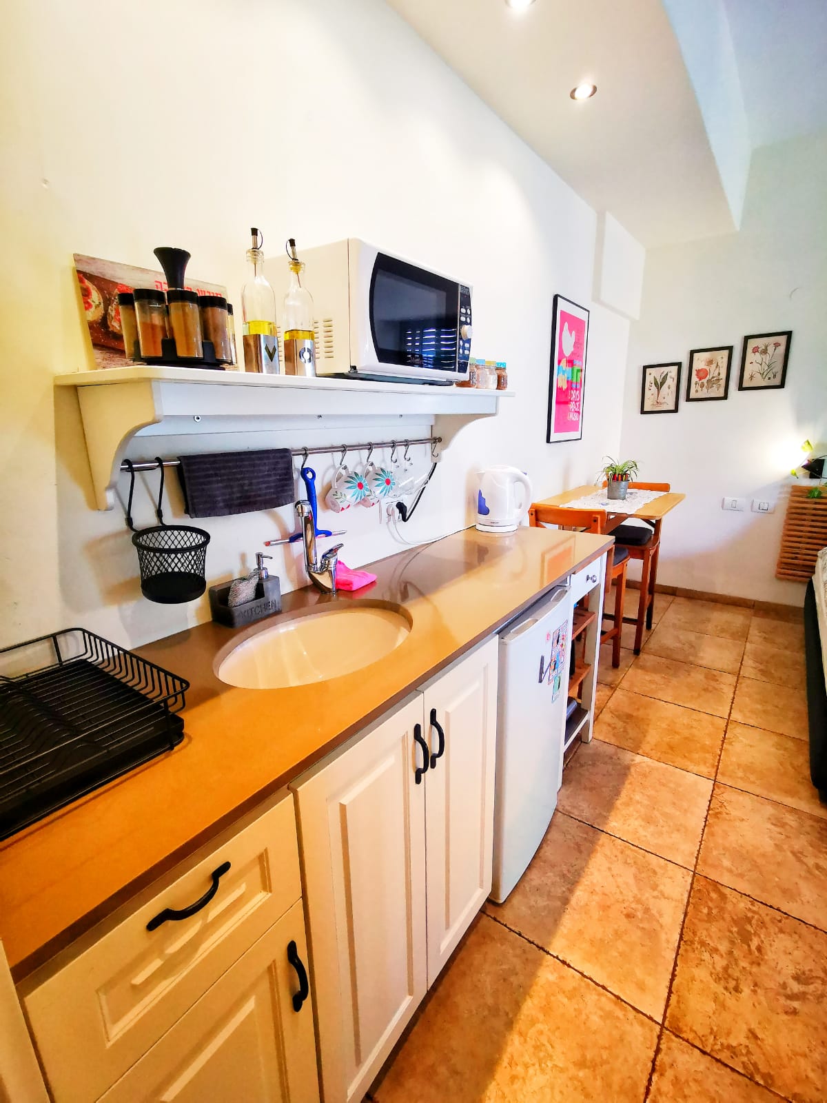 This private suite is a simple specious studio which is a new Extension of an old house with black stone wall. My great grand parents lived here as one of the first 8 original houses in Kinneret, from the 1908th . The space is part of the house with its own entrance- an outdoor terrace where the kitchen/entrance area is and an outdoor bathtub. The house is located 400 meters from the sea of Galilee (across road 90).