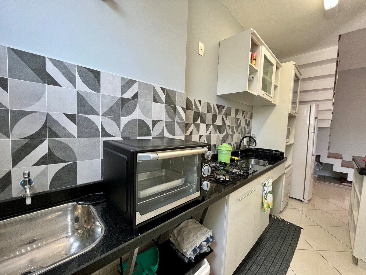 Have a relaxing experience in this charming duplex loft in the heart of Gonzaga! 3 blocks from the beach, close to Independência Square, malls, markets, banks and pharmacies, this Loft offers a parking space and is furnished. There are 2 bedrooms, each with a double bed, 1 social bathroom, 1 toilet, a room for 2 environments and an equipped open kitchen. Air-conditioned bedrooms. Includes housekeeping service Monday through Saturday (excluding holidays) and laundry twice a week.