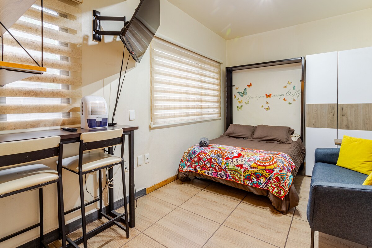 Cozy and fully equipped, this peaceful studio is located in the historic Juárez neighborhood on a quiet, tree-lined street. Surrounded by cafés, bookstores, museums, vintage shops, and a luxury mall, it’s perfectly situated near La Condesa, La Roma, and the Centro Histórico. Ideal for relaxing or working remotely, this stylish loft offers comfort and convenience in one of Mexico City’s most vibrant areas.