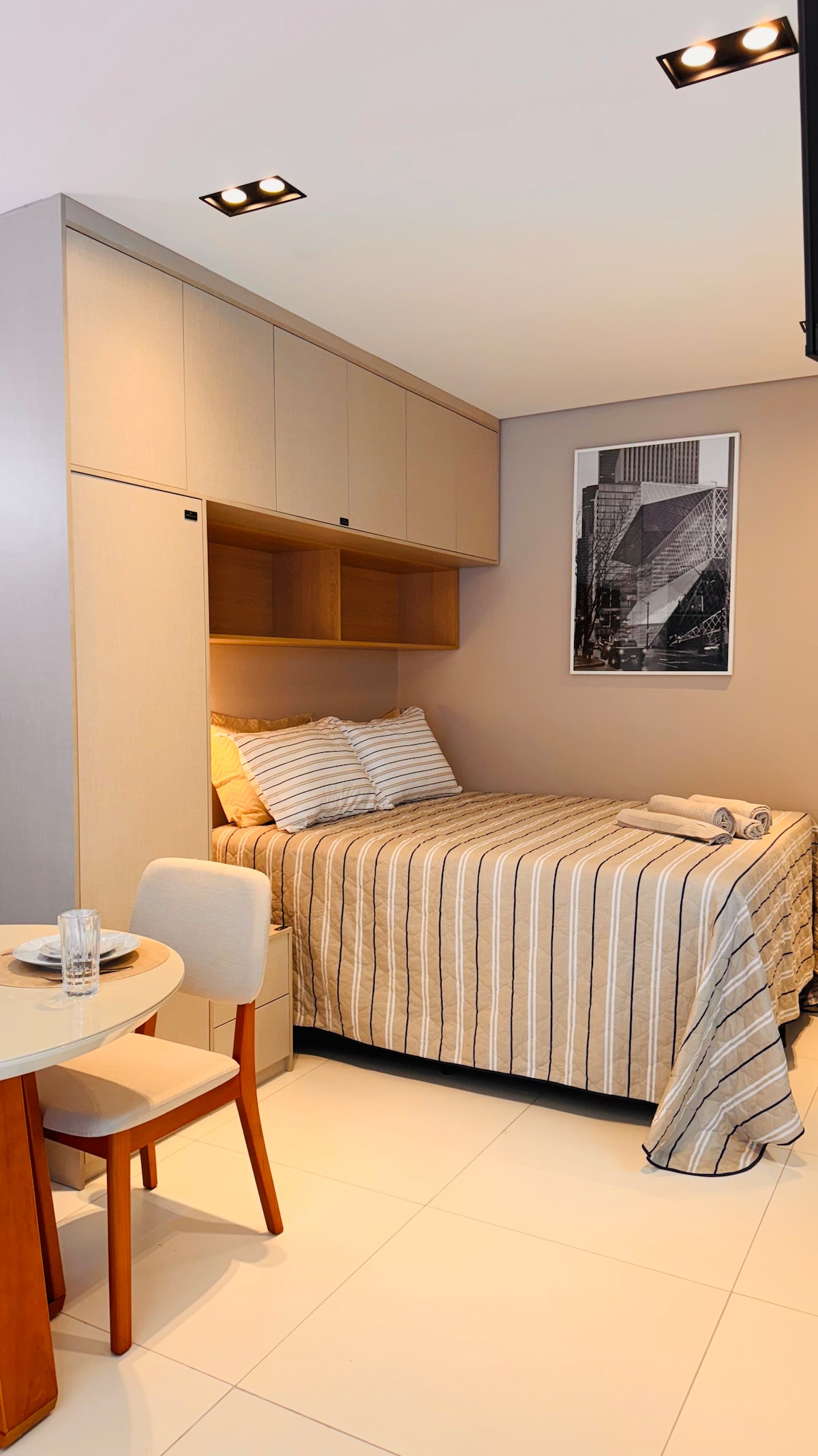 Stay in the heart of the city! ✨ Comfortable downtown apartment just steps away from the mall, restaurants and services. Ideal for leisure or business couples, with complete infrastructure in the condominium: pool, gym, party room and 24-hour concierge. 🚭 No smoking. Electric ⚡ Voltage 220Volts